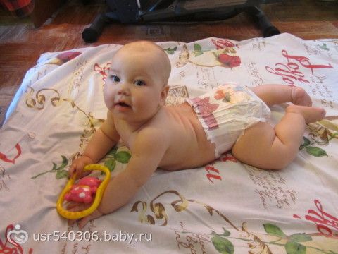 Моей малышке вчера исполнилось 5 месяцев! Умеет многое — переворачивается со спины на живот, подолгу гулит, недавно впервые услышали от нее смех). Пытается сидеть и ползать. Рост какой точно не знаю, но носит 78-80, вес тоже еще не меряли, не думаю что много набрала, наверное не больше 10 весит, где-то думаю 9,5, может меньше