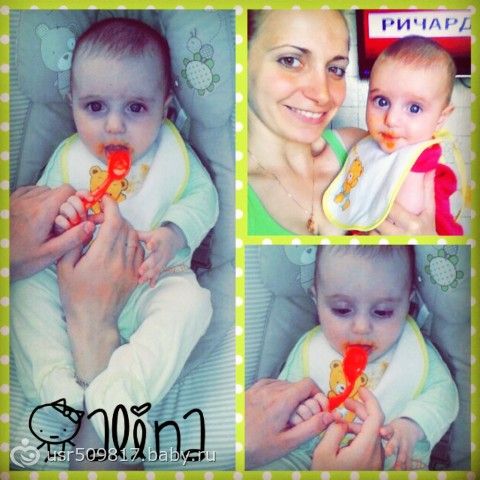 а еще мы попробовали пюрешку (морковку), ложку отняла и все с апетитом