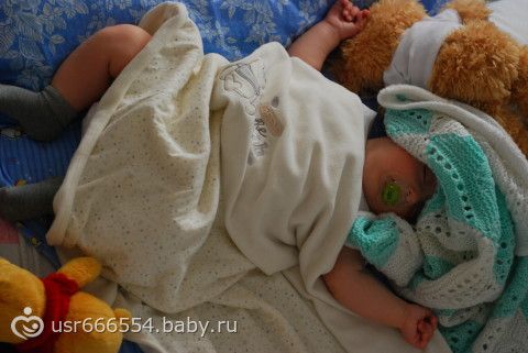 У него есть дурная привычка (в папу) он заснуть не может иногда, пока не накроет голову игрушкой или одеяльцем… И я обычно секу, и как только он засыпает, я убираю… А тут даже не подумала, что он такой рукастый ...
