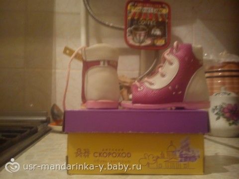 вот они)) кс, купила 2 пары за 700 р. на распродаже в ДМ. да простые не натуральные и без ортопедической стельки, н для начала очень даже хорошо, в них она учится ходить и ставит ножку прямо, а не на цыпках…