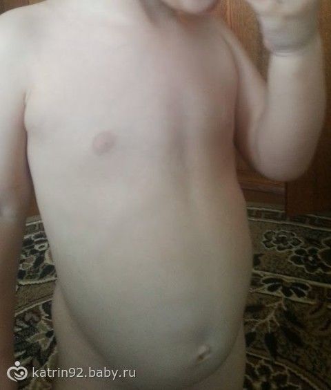 Начну с того, что ребенок очень сильно потеет в дневной сон. Потееет голова, когда просыпается подушка вся мокрая и маечка тоже. В комнате не жарко. Обращались к невропатологу, она сказала плохое кровообращение, прописала магний В6 жидкий. Давали около недели 2 раза в день, не помогло. От него сильно высыпало и запор, ребенок не ходил 3-4 дня в туалет(( Даже когда на улице прохладно, одеваем не тепло и не жарко, когда домой приходим пяточки мокрые, даже колготки иногда. Тут заметили, что пузико вроде как большое, но… Это мой племяш, очень сильно за него переживаю. Вот фото