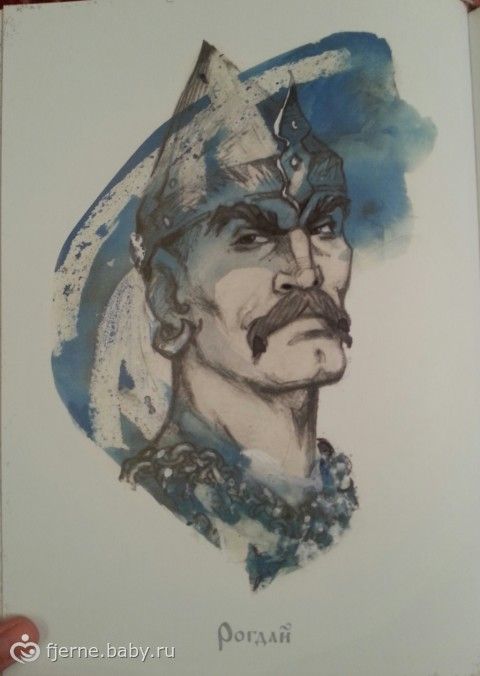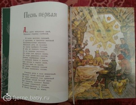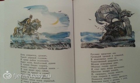 В общем, красота! Фото никак не передаст всей прелести иллюстраций. Так же было интересно прочитать к конце статью Леонида Владимирского «Как я рисовал сказку эту». Оказывается, художнику долго не удавался образ Людмилы, он стремился, чтоб она нравилась всем (ведь в книге в нее влюблены совершенно разные мужчины). В итоге он срисовал ее с портрета Натальи Гончаровой (только нос покурносей сделал на свой вкус), жены Пушкина, так как Людмила в первую очередь должна была нравится поэту. А Руслан, по моему мнению, получился похожим на самого Леонида Викторовича)) Посмотрите, он сам как русский богатырь.