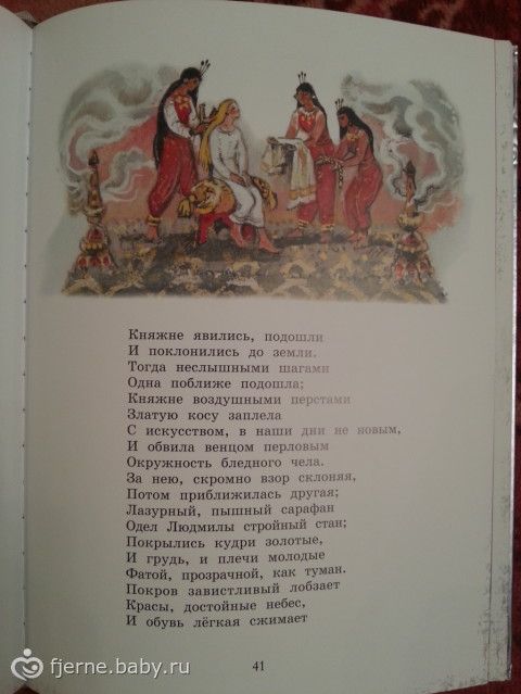 Резюмирую)) Книге рада. Правда лучше бы была хорошая плотная офсетная бумага, а не меловка. Все же книга для чтения самостоятельного, негоже детям глаза портить. Иллюстрации на офсете смотрелись бы никак не хуже. С котом ученым накосячили. Еще потеряли одну шикарную иллюстрации со свадьбой Руслана и Людмилы (в букинистической книге она есть, эта книга — переиздание). Еще не поняла я дизайнерской задумки с пятнами или брызгами (не знаю как обозвать) серебра по краям страниц. На фото можно увидеть. У меня все время было ощущение, что книга испачкана, и я хотела вытереть эти места. Вот и все минусы. А так, сплошное удовольствие. Ляссе классное, с примесью синтетики, край запаян, не расползается)) Шелковые приятней, но лохматятся, и не обожжешь край.