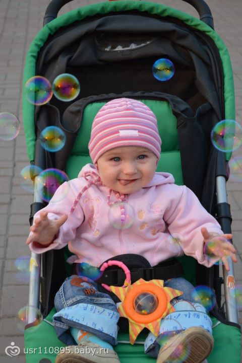 Теперь отчет за прошедший год: конечно, было нелегко, но вобщем, девочка у нас спокойная, стараюсь ее к рукам не приучать. По пустякам не плачет.