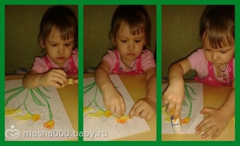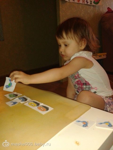 Рассаживали птичек по цветам в нужное гнездышко.На фото еще и с болячкой под носом, в развивашке прыгала и упала, под носом расцарапала!!