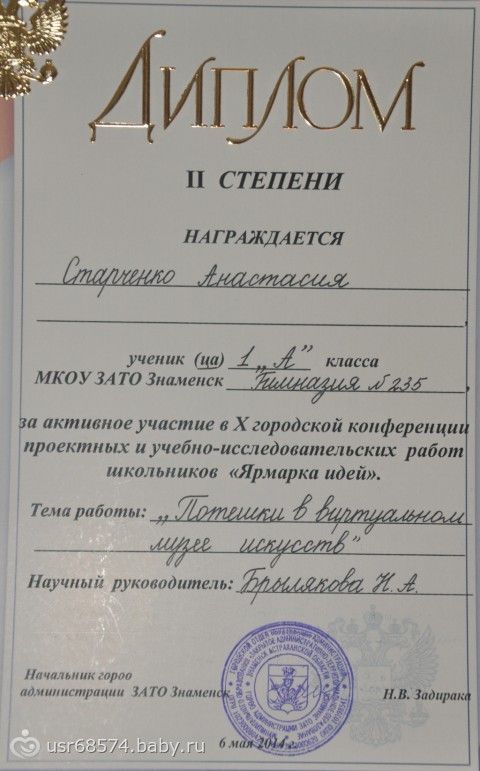 По итогам конференции наш проект получил диплом II степени! Очень рада!