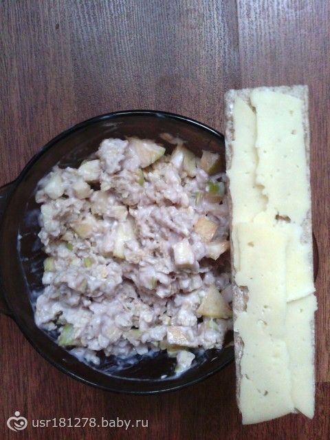 Завтрак — овсRнка с йаблоком и детским йогуртом Агуша(срок годности вышел сегоднR, дочки не стала давать, сама скушала) + хлебец с сыром