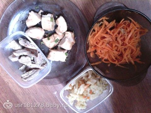 Обед- индейка (вчера ела и не докушала) + куинаR грудка, морковка по карейски домашнRR и тушенаR капуста