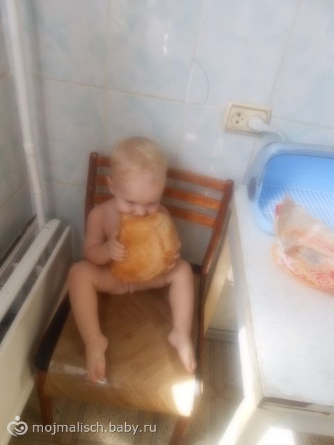 Это он так у моих родителей хлеб ел с магазина. Там пекарня и хлеб брали свежий. Вот мы смеялись — ребенок хоть у бабушки хлеба поест!