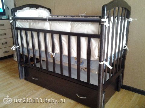 Ну вот и мы купили нашему сыночку кроватку и коляску)))) Сегодня наш папочка собрал кроватку, правда намучался с маятниковомым механизмом, но все вместе мы справились)))) Красотища получилась, попробовала застелить кроватку и возник вопрос стирать ли бортики и как если стирать? Фото коляски скину позже