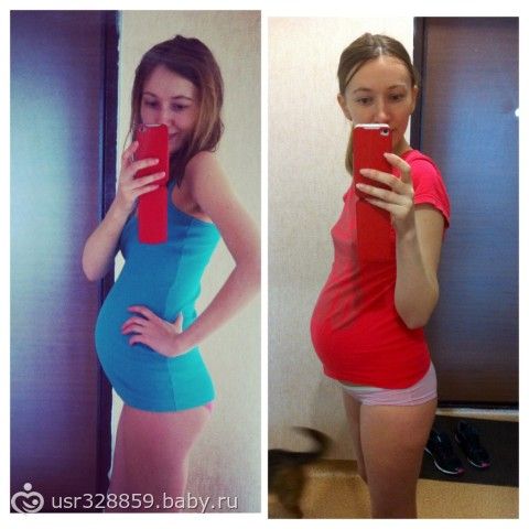 Вот сама чувствую как стало пузико больше, тяжелее, а на фото нет большой разницы: 1. 22 недели, 2. 28 недель.