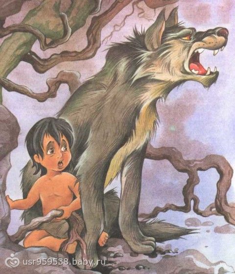 — А отвечаю я, Ракша (Демон): человечий детёныш мой, хромуля, и останется у меня! Его никто не убьёт. Он будет жить и охотиться вместе со Стаей и бегать вместе со Стаей! Берегись, охотник за голыми детёнышами, рыбоед, убийца лягушек, — придёт время, он поохотится за тобой! А теперь убирайся вон или, клянусь оленем, которого я убила (я не ем падали), ты отправишься на тот свет хромым на все четыре лапы, палёное чудище джунглей! Вон отсюда!