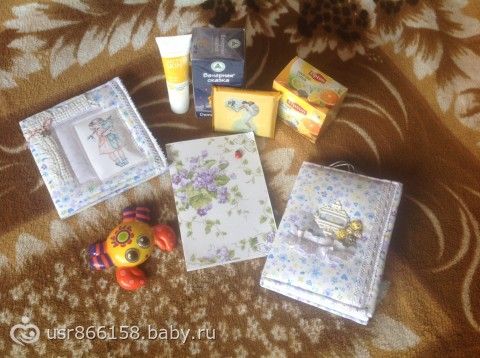 блокнот, папочка и открытка ручной работы просто потрясающее!!! Краба дочка уже оценила и купались с ним сегодня))) Все оч классно!!! Спасибо огромно))) Гуля отзовись пжлста) буду рада дружбе