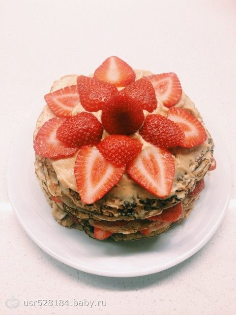 Вот сегодня мужу сделала!!! Тортик… Медовик с орешками!да сыр со сгущенкой и в каждый слой клубнику)