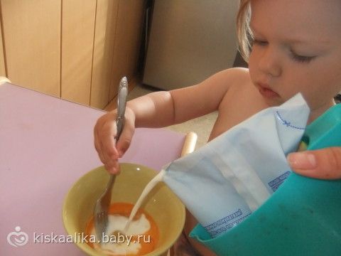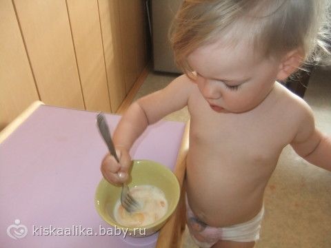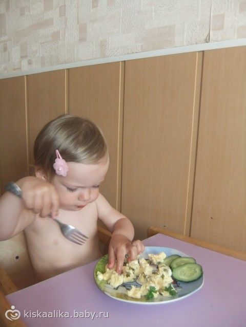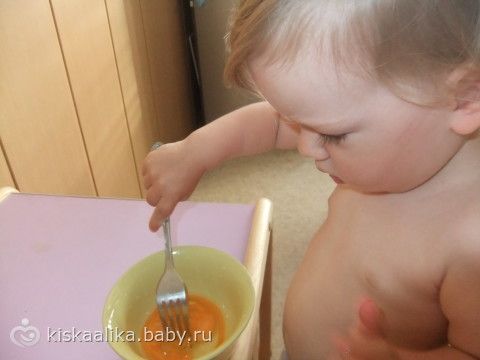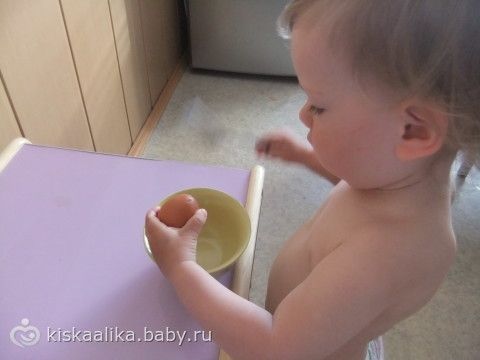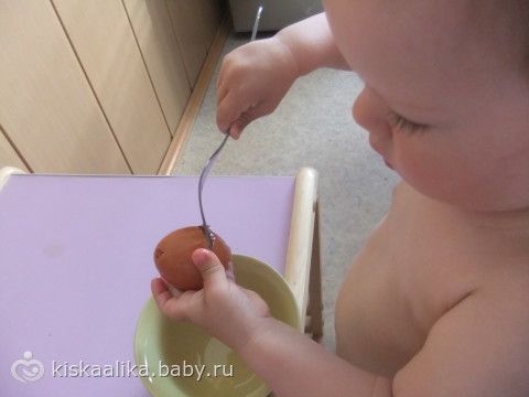 1. Лизонька разбивает яйцо вилкой