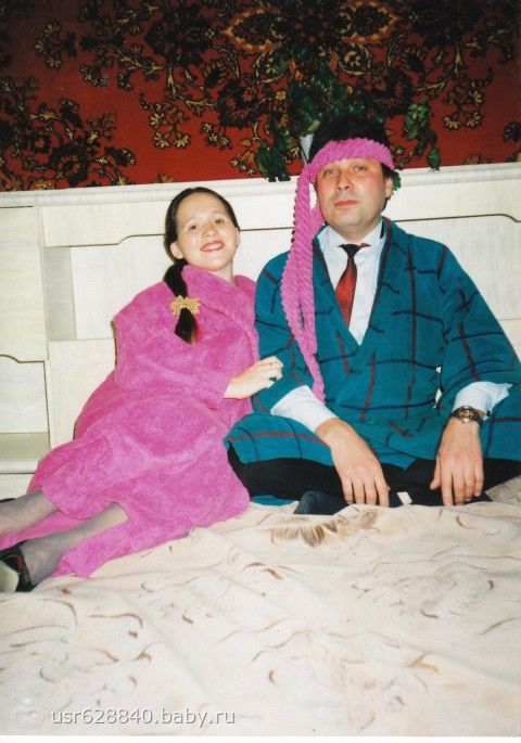 Мама и папа в стиле Санты Барбары. А на маме, между прочим, моднющие колготки, даже со стразами, на фотке их просто не видно, а вот я помню ;)