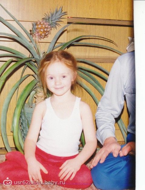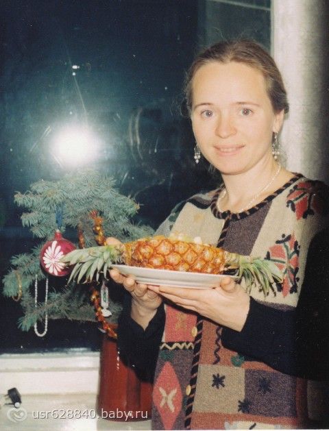 Внимание! Тетя и ананас!!! Ананас мы вырастили сами, из верхушки предыдущего, папа за ним ухаживал, банановые шкурки клали внизу, чтобы он опылился… там такая технология была!
