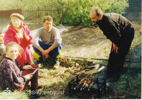 Шашлыки, и кажется на новой даче. На Ольке умопомрачительный берет с ушками и узорами… а я в свитере«какувсех»
