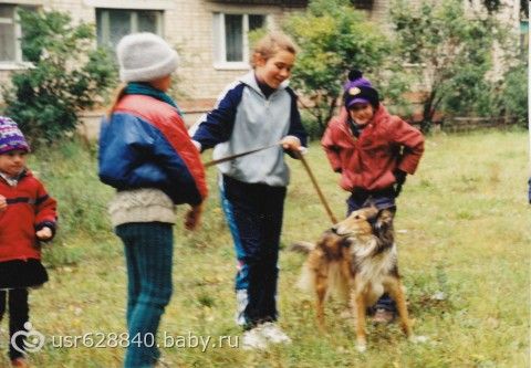 А здесь у меня на поводке наша собачка Ласточка. терпеть не могла фотографироваться, поэтому от нее только вот эта фотка на память и осталась.