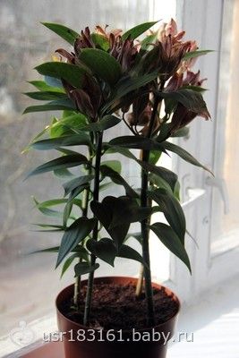 Вот такие лилии в горшке. Сейчас начинаю листики засыхать, а из земли появляются вот такие росточки.