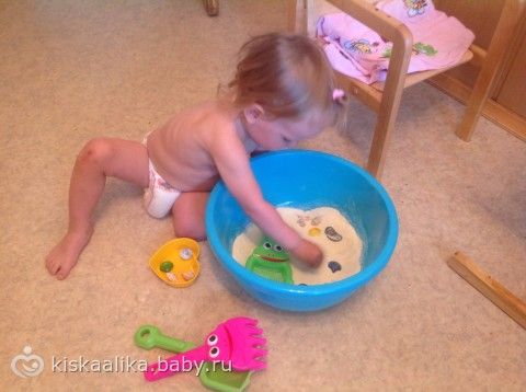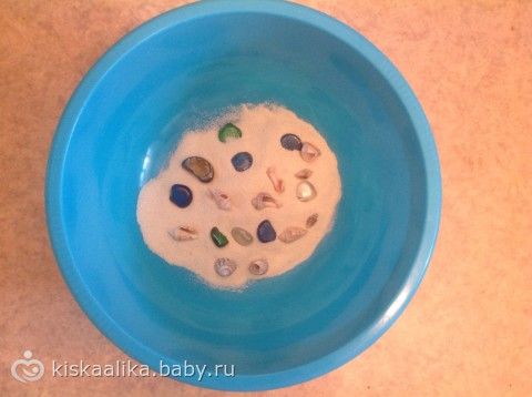 Сделала сегодня наконец-то))) просто насыпала манку и положила туда камушки и ракушки! Дочка сидела ковырялась там больше 30 минут! Благо я это сделала перед уборкой! Всю рассыпанную манку смела и с Лизой вместе щепоткой собирали ее!