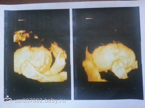 Во-вторых наш малыш лежит поперек (тазовое предлежание) надеемся еще есть время перевернется))) Но это только начало, он лежит так что его ножки всегда около моськи, ни как не давал толком посмотреть свое личико))) Сосет пальчик правой ножки))) Но зато нам улыбнулся))) Муж чуть не расплакался))))