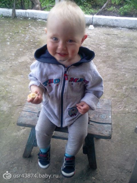 такой клевый)))) ходит уже? зеленкой подбородок замазан)))) у нас тоже каждый день новые царапины и шишки)))))