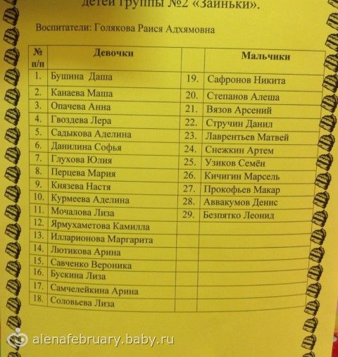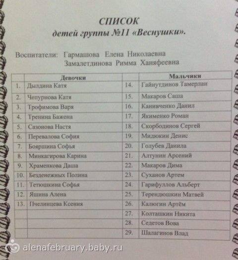 А вот и списочек нашей группы ( кстати, 31 чел и девочек с мальчиками поровну все таки, а то кто помнит, я боялась, что одни мальчишки были набраны и всего 6 девочек, но потом решили пол напором желающих открыть еще одну вторую младшую группу, засчет того, что первую младшую одну открыли. И все выровнялось)))
