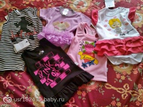 А, вообще, не только одежду. Пустышки, бутылочки, нагрудники, шапочки, туфельки тоже есть.