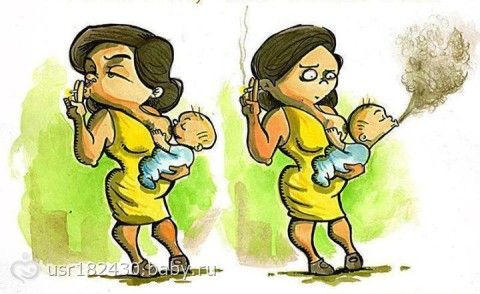 И кстати, если мать курит, ребенок привыкает к никотину в молоке.