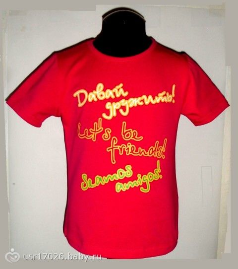 футболка на девочку такая только желтая а надпись красная размер 110 цена 160 2) футболка на мальчика рост 116 цена 180р