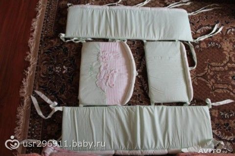 В комплект входит: одеяло с пододеяльником, подушка с наволочкой, простыня, 4 борта, балдахин без опоры( так шло изначально). Все в отличном состоянии, реально пользовались только 2 бортами и простынкой, но и они отлично выглядят, без пятнышек. Покупала за 3990, продаю за 1000 руб.