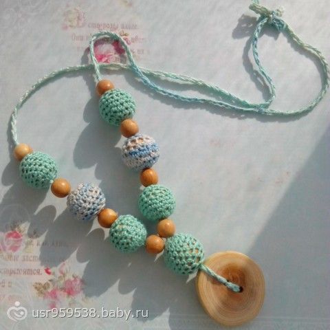 5) Творчество. Да, такая не нормальная дамочка, надо мне что-то творить даже с месячным ребенком, пусть хотя бы 5 минут в день. Скрапбукинг пока нереален — нужно долго сидеть за столом, поэтому я занялась новым видом творчества, о котором мечтала раньше — слингобусами. Мне всегда хотелось сделать скорее не слингобусы, а экобусы. Чтобы это была не просто игрушка для ребенка, а красивый аксессуар, подходящий к моей одежде, стильный и взрослый. Вяжу иногда по минутке в день… думаю о композиции бус, пока кормлю ребенка…