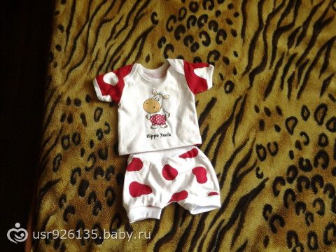 А вот такой милый костюмчик нам наша тетя подарила, будем к прабабушке в нем ездить