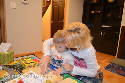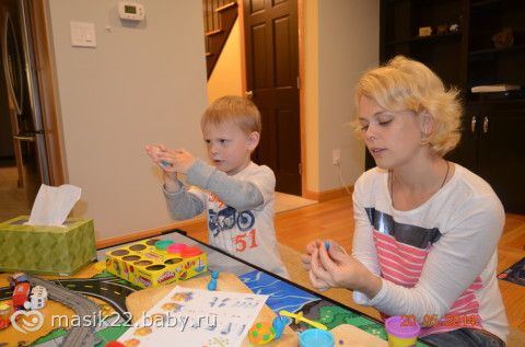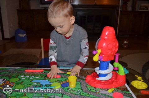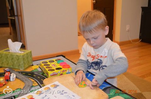 Вот как-то так. Чудо машину для пластилина я не фоткала. Есть старые фото, с 2-х летия, ее ему на 2 года подарили. Тут Веня в нее играет.