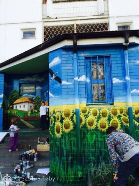 У нас есть дома рядом, где все подъезды расписаны… Красота. А на гаражах, что выходят на бульвар, тоже красота нарисована, пейзажи, море, и так далее. Приятно.