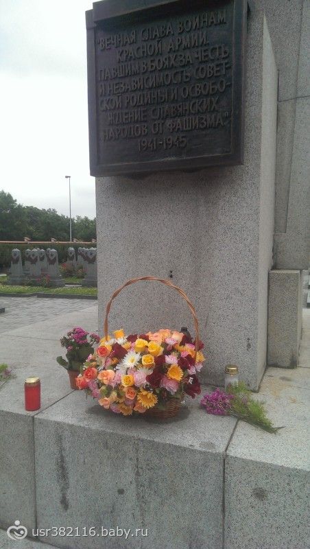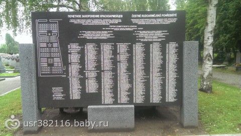 В день моего отъезда в Чехию, свекр попросил меня, если вдруг я найду памятник советским солдатам-возложить цветы, т.к. его дед освобождал Прагу… я всю неделю пыталась выяснить если где-то такой памятник-в итоге выяснилось, что недалеко от нашего отеля есть целое кладбище войнам-освободителям, и в последний день утром мы поехали туда, долго не могли найти, думали, что это будет в лучшем случае братская могила с мизерной табличкой, но когда мы нашли это место- были в шоке, девочкиии, я не была на мамаевом кургане, но те эмоции что я испытала на Ольшанском кладбище не передать словами… посмотрите в каком все состоянии, все чистенько, ухожено, на каждой могилке кусты живых роз, все могилки с табличками, и что больше всего поразило, что именно вокруг сектора в котором покоятся советские войны-высажены березки)) наверное, если бы мне не нужно было уезжать в этот день-я просто молча просидела бы там в своих мыслях...