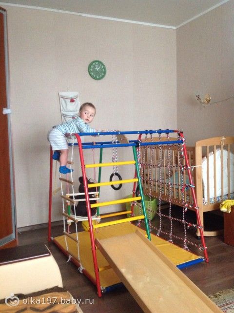 У нас подобный еще мой- я на нем в 12 лет копчик сломала — упала(( сыну поставила и на иголках была, раз ночью вскочила, приснилось что он внизголовой отпустил руки, ему 5 лет было… соседский мальчик 1,8 залез пока не видела мама и упал — все обошлось, сотрясением отделались. В общем месяцев через 6 я убрала его) хотя у меня был))