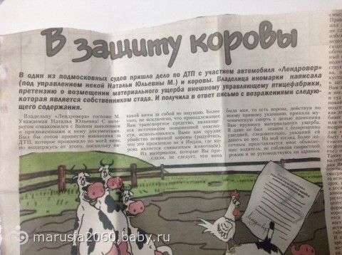 Эт статья из газеты, у мужа на работе еженедельник. Мы с ним чуть животы не надорвали от этой истории.