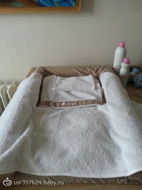 В комплекте к нему шло полотенечко… ( внизу липучки). Уже купила одноразовые пеленочки сменные.