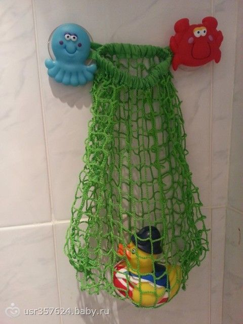Сумка для игрушек в ванную) Что-то она мне показалась маленькой и не удобной… Пару раз с плитки падала уже, может я как-то цепляю не правильно… не понятно) Кинула в нее пока что свою утку, с которой в ванной плаваю))))