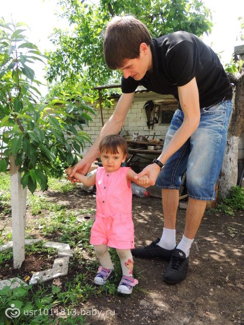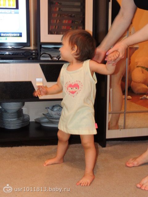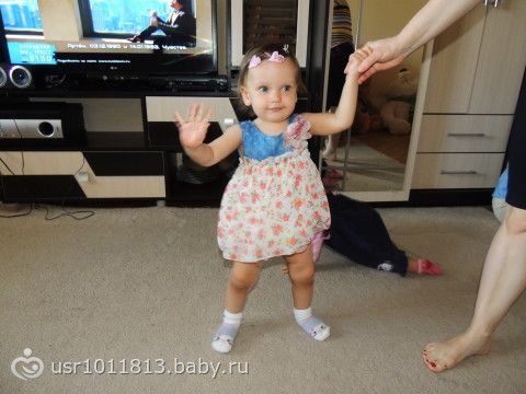 Вике уже скоро 1.1)многое говорим-мама, папа, деда, мяу, гав, га-га, ко-ко, ляля, на(отдавая что-то), но-но-но(ругает, делает хмурые брови и пальцем машет), ктете(кто это спрашивает).прошли всех врачей, ттт-все хорошо.результаты экг скоро скажут.другие анализы норм.манту, а потом и прививку(корь, краснуха, паратит) сделали.вчера сделала пять шаговактивно приучаемся к горшку и опять мноооого едим сисю(.хотим проколоть ушки.спать начали резко по одному разу, но по 2-3 часа.танцовщица еще та.дома все время что-то поет, а она танцует