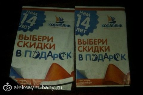 Сегодня соседка вечером пошла в Кораблик, потом позвонила и сказала, беги скорей, там акции.Короче при покупки чего либо дают типа лотерей-открываешь, а там кому что выпадет, кому-то в подарок памперсы Меррисы,, скидки на разного типа продукци., я набрала бесплатно 3 пачки Меррисов, сумку для коляски, планшеты для рисования и много всего.....
