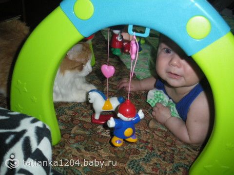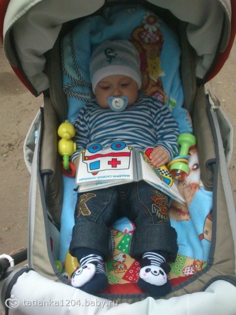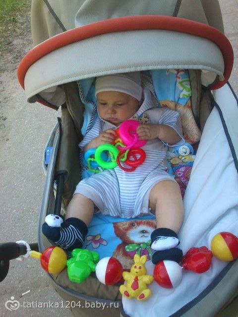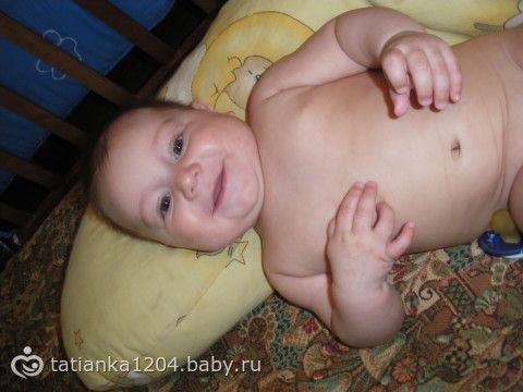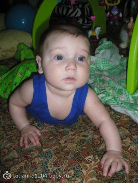 Итак, сегодня нам уже 5 месяцев))) За месяц дитёныш изменился до неузнаваемости… и внешне и поведением, стал безумно активным и сообразительным! Игрушки выбирает только сам! По пластунски уже исползал весь диван и полз бы дальше если бы пускали, скоро переедем на пол!) Стоя на четвереньках выпрямляет руки и раскачивается взад-вперед всё быстрее и быстрее) Лёжа на боку пытается подогнуть под себя ногу, однажды поймала его, когда он опираясь на один локоть как бы сидел на одном полупопии, поджав под себя ногу, так что подозреваю что всё-таки он собирается сесть… Бутылку с водой держит сам и не позволяет ему помогать, освоили поильник — видит его, берёт рукой за ручку и сразу открывает рот — уже знает что это за штука) Ниблер пустой лежит в игрушках, открывает сам калпачок и пихает в рот, огорчается что там ичего нет) Начал ворочаться во сне, сколько раз посмотришь в кроватку — столько разных по увидишь, больше всего меня пугает поза носом вниз… Стал больше капризничать, в коляске лежать особо не хочет, даже полусидя подчас кобенится, перед засыпанием теперь стал канючить и днём и на ночь, стала укачивать чего раньше не было практически никогда… Активно пытается подружиться с котом, гладили его несколько раз, ещё пару раз Дёма пытался схватить его за ногу или за хвост, Белобрюша от греха подальше быстро сваливает))) Стал издавать много новых звуков и все нараспев, урчит, издаёт клич «динозаврика», очень нравятся ему деревья, когда на коляске проезжаем под ними — неописуемый восторг, часто улыбается, «гыгычет» — не знаю смеяться всегда так будет или ещё закатится))) По утрам будет меня теперь тем, что поднимает и отпускает автостенку у кроватки))) Любит людей, ко всем идёт, со всеми играет, только почему-то боится бабушку (мою свекровь), услыша её голос начинает орать (не плакать, именно орать)...(((( Вес и рост пойдём измерять через неделю, напишу дополнительно) Вроде пока всё! Спасибо за внимание тем, кто дочитал) Ну и немного нас)