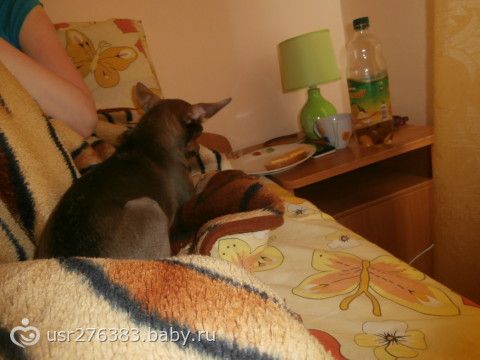 А вот эта рыжая морда сожрала у нассливочное масло, которое мы понеосторожности оставили на столике.