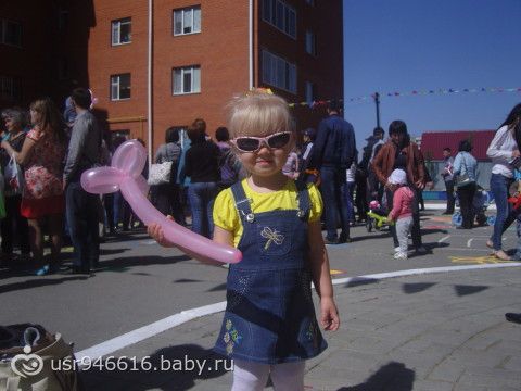 Вчера был замечательный день. И главное погода не подвела! Мы с дочей нагулялись. К 10 утра мы с подругой и детками поехали на Чкалова 15А,15Б на праздничное мероприятие, которое проводила компания Tupperware и ОАО Арай. Правда мы долго икали эти дома… Но ничего мы нашли их! Доче сразу подарили цветочек из шарика. Было много деток. Звучала зажигательная музыка. Детки танцевали, играли. Их угощали конфетами, печеньями, напитками, а потом и мороженное дали. А в самом конце разрезали большой торт (у кого-то был День рождения).
