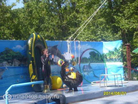 ходили вчера. если пойдете, берите места на красный или синий (по центру)сектор. Там всего 1 морской котик и 2 дельфина. В целом, представление так себе, на 4. Дочка сначала смотрела, потом уже стало скучно ей. представление около часа идет, даже мне показалось чуть больше. А еще она напугалась когда ее дельфин обрызгал и расстроилась что платьице ее красивое намочил. В целом сходить 1 раз вполне достаточно. Нам билет бесплатно дали от работы, но если бы я заплатила 700 руб. мне было бы их жалко