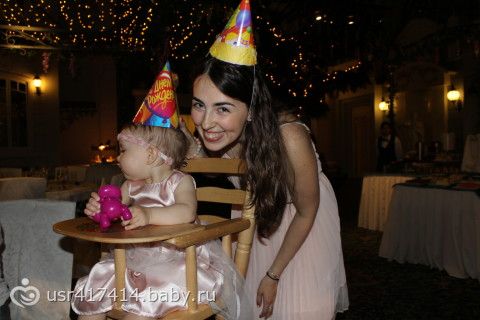 3. итак Корстон. по моим подсчетам это самый бюджетный вариант. гостей у нас получалось немного, 10 человек, но в итоге было 8 человек с детьми. Еда скажу сразу там никакая, хотя мне было совсем не до еды, тк я очень волновалась, то с тортом бегала, то с дочей по детской комнате и сцене. горячего было мало, и то что я брала уже было холодное. шампанское. водка и безалкогольные напитки все входило в стоимость. гости сказали что были вкусные пирожные, я успела съесть рыбу красную, селедку под шубой и немного салата, было вполне. так как ровно в год я закончила кормить грудью свою Принцессу, я пила шампанское) реакция дочки на место куда мы пришли, меня поразила. в зале было достаточно шумно. играла живая музыка, много детей. хорошо что стол я выбрала подальше от сцены, но дочка вообще не испугалась. с интересом на всех смотрела, сразу потащила бабулю в детскую комнату, и готова была не выходить оттуда весь вечер. у сцены тоже очень много ходила. смотрела как детки поют и танцуют. нас поздравляли со сцены с маленьким пирожным, а к столу уже принесли наш тортик. были мы там с 2 до 5:30. под конец дочка немного устала и в машине быстро уснула. в общем мне очень понравился такой формат праздника, особенно это удобно с детьми. а деткам немного постарше так там вообще очень весело, всех разрисовывают аквагримом, готовят номера, играют аниматоры, все входит в стоимость. я очень рада, что сделала праздник не дома. на протяжении двух месяцев подготовки, моя мама видя как я клею приглашения, книжки и прочее говорила что я сумасшедшая, да и крестная наша слукшая на протяжении этого времени мою болтовню про др сказала что я просто крейзи-мама не доиграла в детстве)))) но мне все равно, за свои почти 26 лет я запомнила только то др, которая делала для меня мама в мои 10 лет в клубе арлекино, именно детское веселое день рождение с клоунами, атракционами и играми, остальные были на даче или дома с родными ну и парой подружек. каждый год они были одинаковыми и это был не детский др, а повод собраться у взрослых. я хочу с первого года заложить традицию отмечать день рождение дочери как полагается, чтоб каждый др был особенным. пусть даже первый день рождения она помнить и не будет, воспоминания сохранят фотографии.
