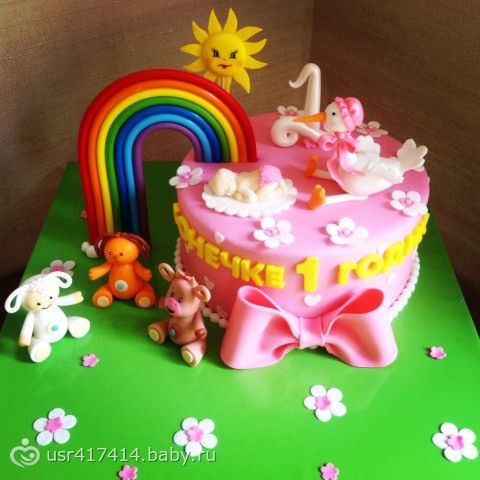 2. Торт. очень хотела заказать у девочки, которая у меня в друзьях, Елена, но она не смогла, пришлось искать быстро кого-то другого, тк у меня был не готовый торт, а я хотела свой дизайн, было не просто. Нашла на бэбиблоге, Диана зовут. внешне получилось очень красиво, в общем все как я хотела. правда пока довезли у двух фигурок ушки отлетели, но это мелочь. по вкусу тоже всем очень понравилось.