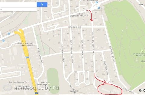 Верхняя стрелка — поворот перед Малашкой. Ехать по главной дороге. Здание вы сразу увидите. Там неприметный въезд в ворота.